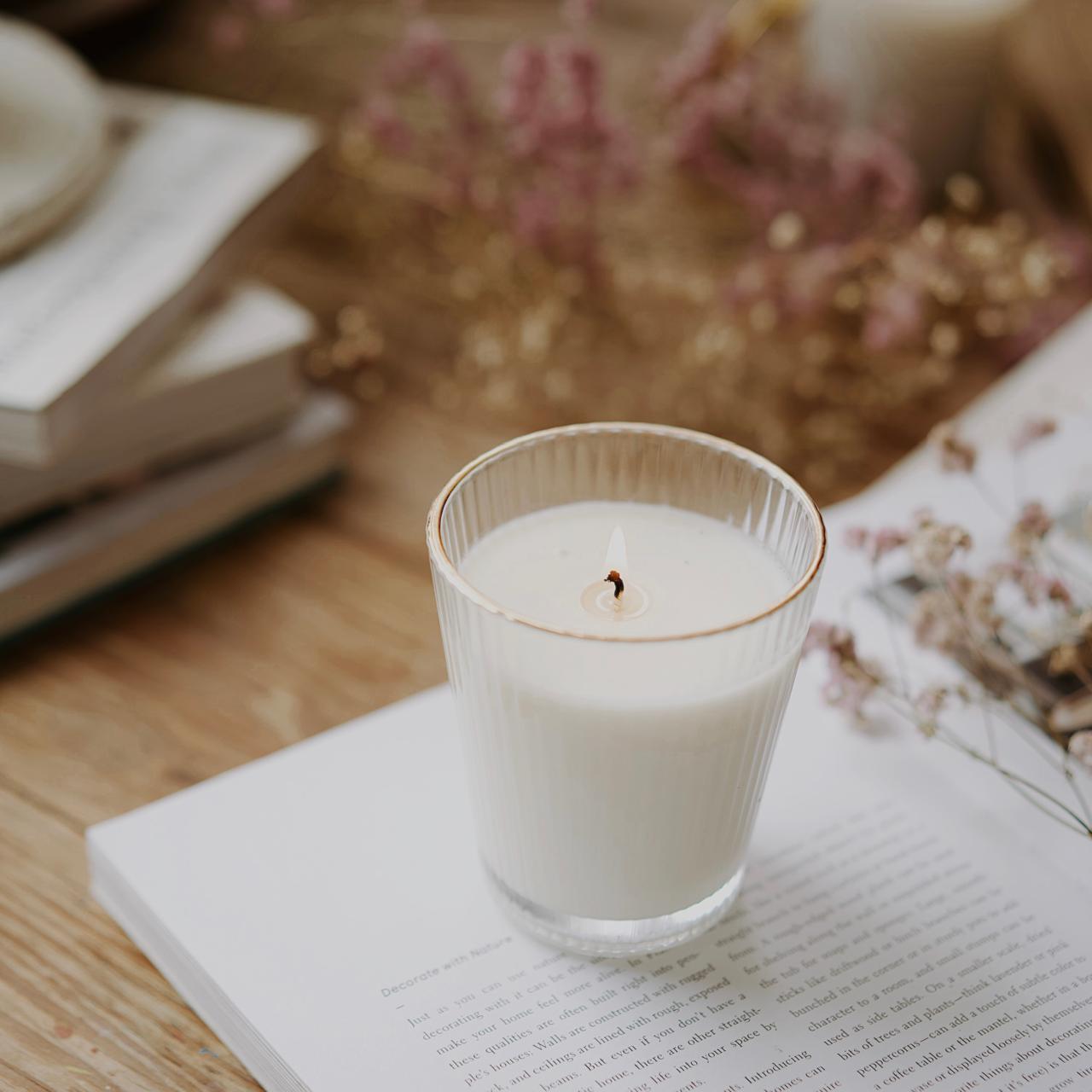 Vela natural® ecoblend vegetal formulada a base de aceites vegetales. Volcada a mano en envase de vidrio (8,5x10m) con pabilo 100% algodón.