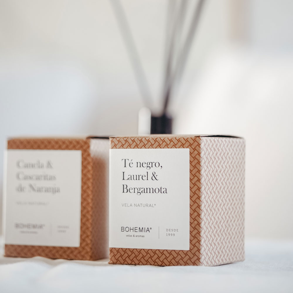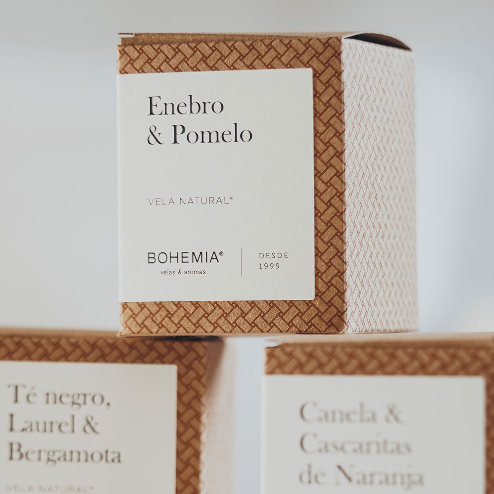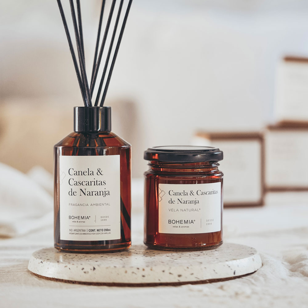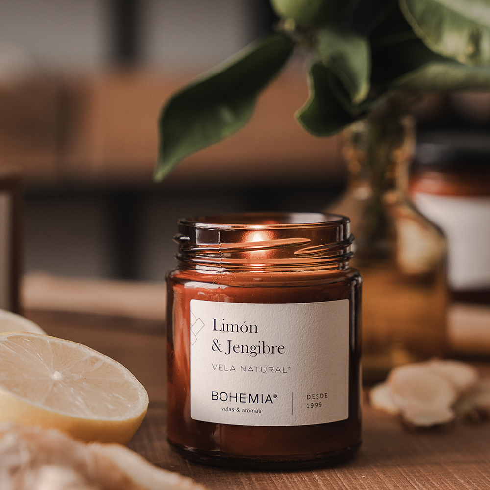 Vela natural® ecoblend vegetal formulada a base de aceites vegetales con fragancias de notas especiadas y frutales. Volcada a mano en envase de vidrio color caramelo (6.5x8cm) con pabilo 100% algodón.